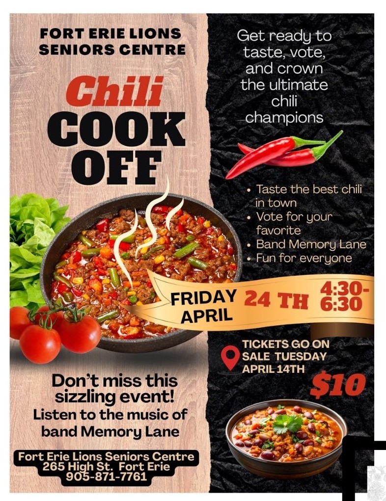 Fort Erie Lions Seniors Centre 265 High Street, Fort Erie, Ontario, CanadaTaste the best Chili in Town and crown the champion. AND listen to the tunes of the band Memory Lane. […]